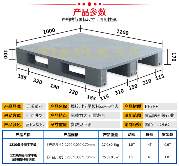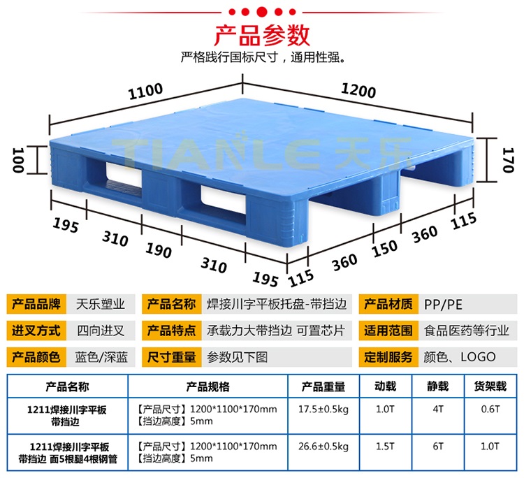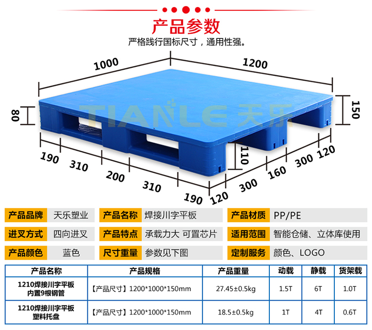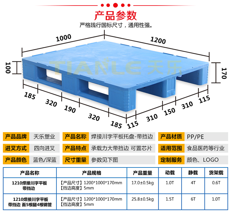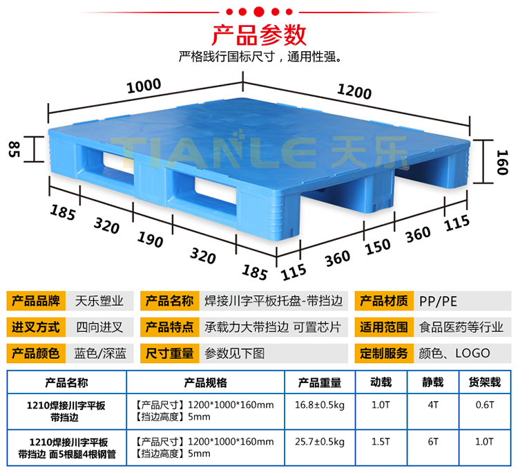 我公司拥有托盘焊接设备两台,主要生产:1210焊接川字平板170mm高带挡边不带挡边托盘;1210焊接川字平板160mm高带挡边不带挡边托盘;1211焊接川字平板170mm高带挡边不带挡边托盘;1210焊接川字平板150mm高托盘。我公司提供产品定制、代加工服务。