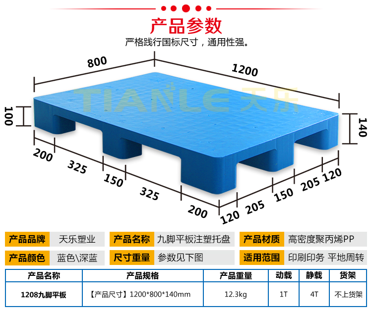 1208九脚平板塑料托盘